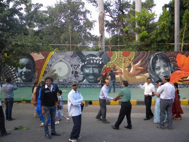 Augustina states “I am a two dimensional artist who focuses primarily on mural painting. I find that the scale of a mural allows for increased expression and evokes a transitory response in viewers. Murals have the ability to relocate an onlooker and change one's perspective. I also feel that the accessibility of mural arts creates a large and robust viewing population which is often more diverse than that which frequents museums or galleries. Viewers are forced to face the art, make personal aesthetic and emotional judgments and move on.”