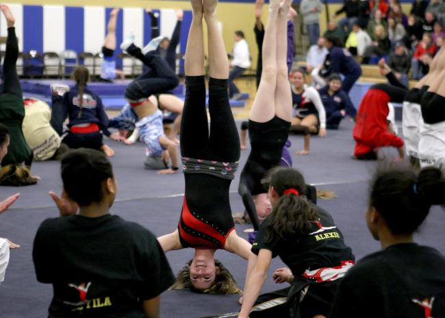 The Rams scored 153.1 points with Ava Welch taking third in the individual all-around with 35.4 and Regan Hunt 10th in the all-around with 34.0.