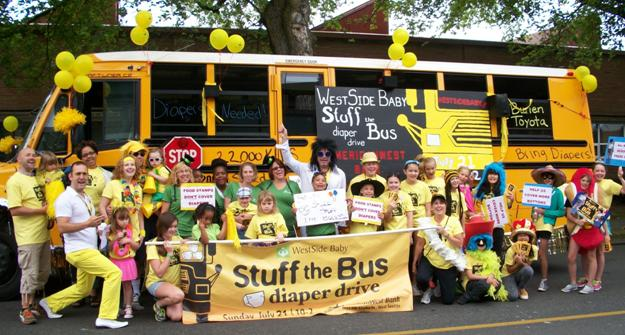 Their goal is to collect 290,000 diapers for local kids in need. Why diapers? Diapers are expensive and aren't covered by any assistance program. A baby who sits in the same diaper all day is more vulnerable to diaper rash, infection and abuse. Learn more about Stuff the Bus at http://www.westsidebaby.org/news-and-events/stuff-bus-diaper-drive-2014.