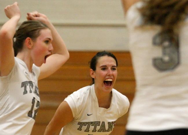 The victorious Titans received 13 kills and 10 digs from Lexie Jones, 25 assists from Sophie Miller and 25 digs from freshman Allya Ranis. Young contributed five kills and four blocks and Megan Stumpf scored six blocks.