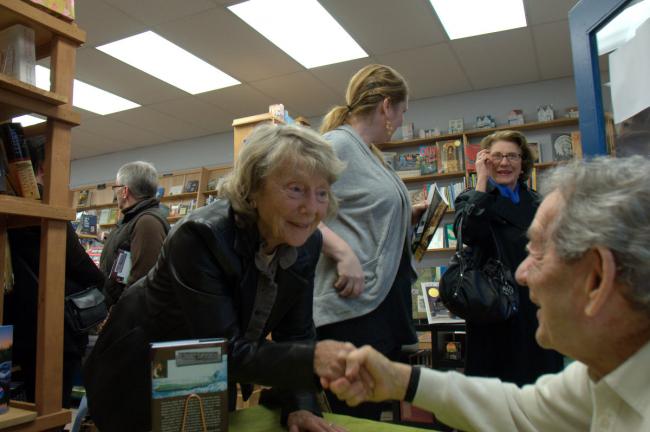 Jack Burke, local resident and retired pilot signed his book A LIFE ALOFT for visitors to Burien Books Friday night. For more than two hours Jack regaled the large crowd with tales of his life in the military and later as a round the world pilot for Pan American Airlines.