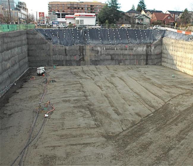 The Hole at 3922 s.w. Alaska St was originally slated to become Fauntleroy Place including a Whole Foods Market, Hancock Fabrics, apartments and underground parking until the project stalled in 2008. The parcel is up for sale in October, 2011.