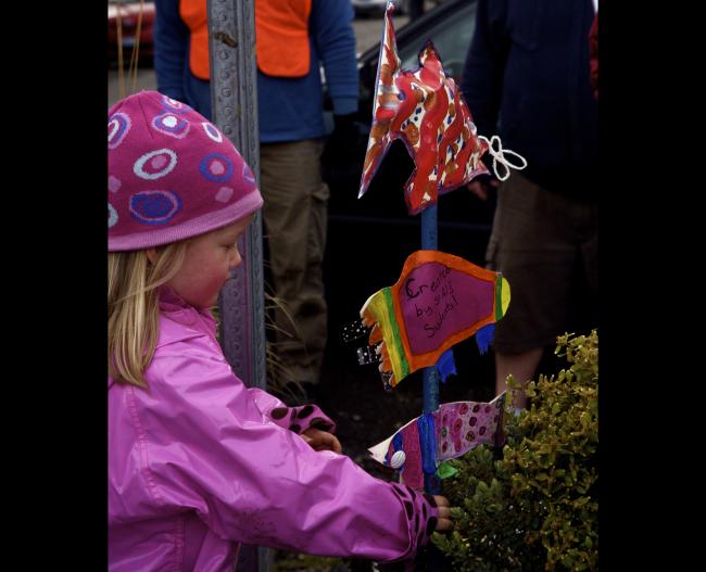Fourteenth Avenue Northwest was a particularly colorful sight on Saturday, April 16th. Led by the East Ballard Community Association (EBCA), a parade of fish was guided from 59th street to 63rd street to mark the culmination of 14th Avenue's planter project, which was started three years ago by the EBCA.