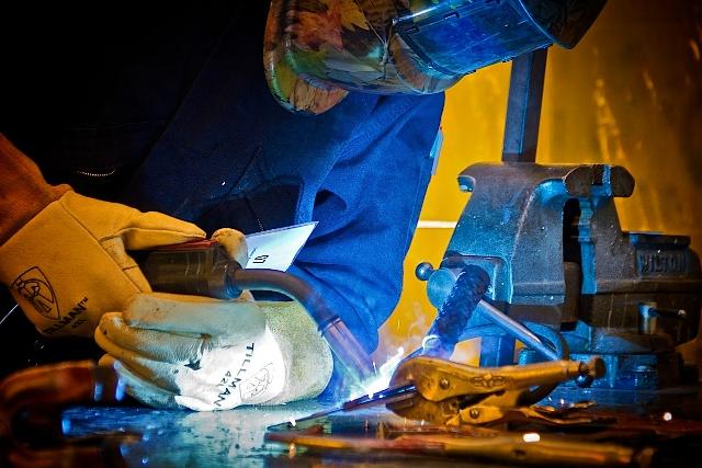 Omar Tellez Performs a mig weld on a metal welding coupon during the SkillsUSA Washington State Leadership and Skills Conference and Automotive Skills competition at SSCC.