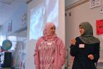Heba Al Mohsin and Zainab Al Mubarak are from Qatif on Saudi Arabia’s eastern coast. They showed their class PowerPoint images of modern glass highrises in Riyad, the nation’s capital.