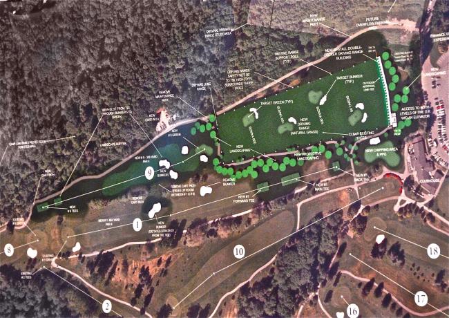 While there are numerous approaches to fitting a driving range into the existing property the plan offered in the September meeting was controversial because it called for a shortening of the current par 5, 9th hole by some 200 yards, making it a par 4 hole and the potential shortening of the 10th hole by some 40 yards.