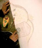 The Mural project was the idea of West Seattle photojournalist,Vicki Shaw, who started working overseas in 1996. Shaw returned to Denny School Tuesday, March 1, this time involving Tanzanian kids. She travels to schools throughout King County. She also happens to be the lucky traveler who gets to deliver the scrolls between America and India, Africa, and Asia, photographing and videotaping the students' reactions as they unfurl the artwork from another land.