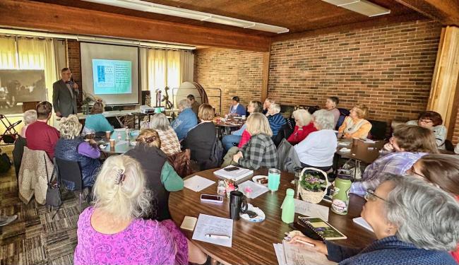 Dan Nye,Executive Director - Legal Affairs for Schmitz Park Creek Restore spoke before the Seattle District Garden Clubs meeting on Feb. 17 to talk about his group's efforts to re-daylight Schmitz Park Creek and preserve the park for future generations.
