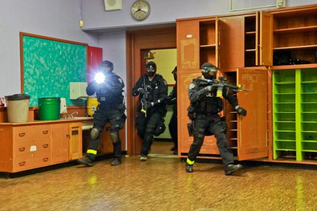 The Genesee Hill School Building (5012 SW Genesee St) was the training ground for the Seattle Police Department Special Weapons and Tactics (SWAT) Team Feb. 15 honing their response to active school shootings.