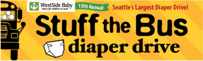 July 19 is STUFF THE BUS day for WestSide Baby for the 15th year. It is the largest diaper drive in Seattle The goal this year is to collect 500,000 for the 10,000 children under three living in poverty in King County.