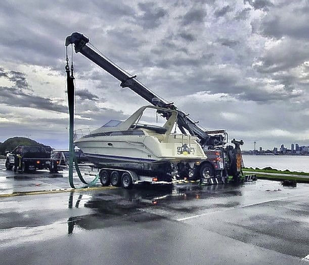 On Wednesday Nov. 5 Bankers Towing out of Renton came to lift the boat up with slings, and put it on a flatbed trailer to be taken away by Republic Services.