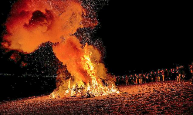 On Saturday evening, people brought a large number of their former holiday trees to the beach forming a pile 12 feet…