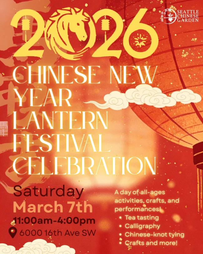 The Seattle Chinese Garden has announced an upcoming event to celebrate 元宵节, or the Lantern Festival, on March 7th.