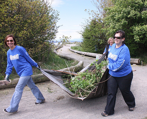 Over 50 volunteers from the cruise industry showed up at Golden Gardens today, armed to the teeth with all manner of gardening tools to show invasive species some whatfor.