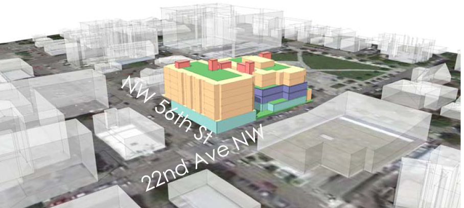 Last week Henbart LLC, current owner of Ballard Bartell’s property presented their design plans to the City of Seattle’s Design Review Board in an early design guidance meeting. The public was invited to the meeting and participants were invited to add their concerns and comments.