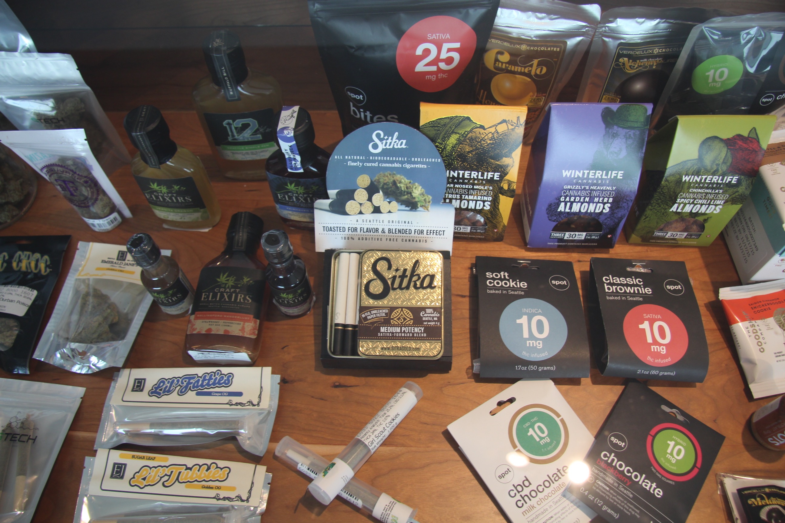 Hynes prides himself on keeping a large selection of high quality products to offer, and customers will find a smorgasbord of everything from edibles and oils (Dama Oil) to premium flower (cannabis buds) grown by High Altitude, Doc Croc, GTech and Emerald Jane. A few other items they offer right now are Sitka Cannabis Cigarettes, lotions, Craft Elixers, hash and Winter Life Almonds. There is also a fine collection of CBD (Cannabidiol) emphasized products.