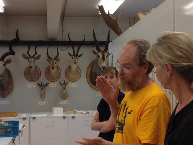 Bradley showed us the head of the wolf that died on I-90, probably hit by a car after it had been shot, the partial skeleton of an Orca with the paw of a grizzly bear appearing to be its fin. This is amazing I thought, seeing the collections staff at work reconstructing bones. Imagine if children, teenagers, adults could see behind the scenes like this, people doing what they love, even cleaning up after the beetles have eaten to the carapace.