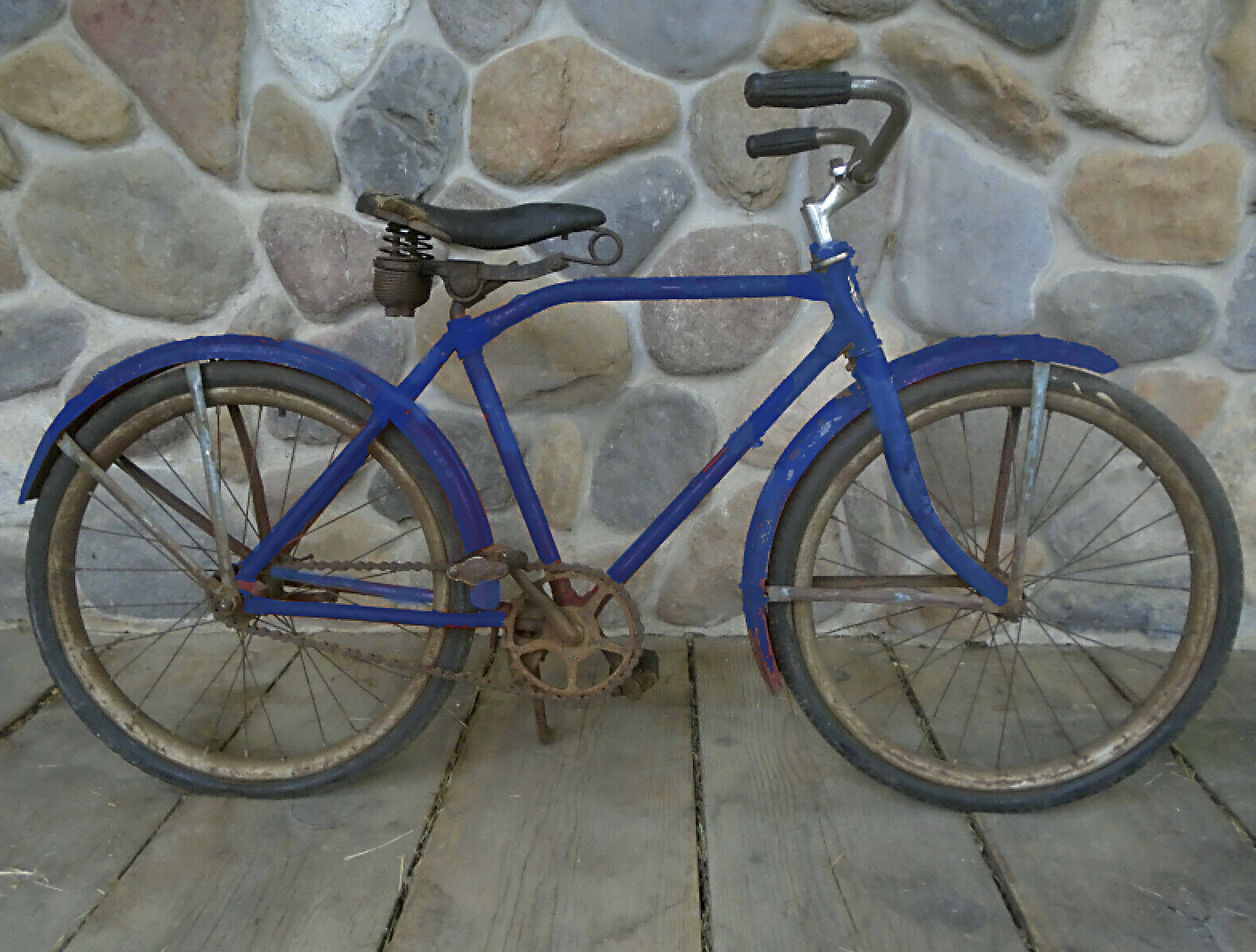 Russell had already made the choice: a powder blue, 26 inch, balloon-tired baby with steerhorn handlebars. Absolutely the most gorgeous creation from the hand of man. The frame had been broken and brazed down by the sprocket, but I didn't mind.
