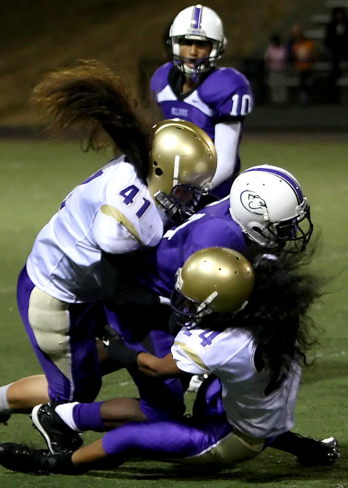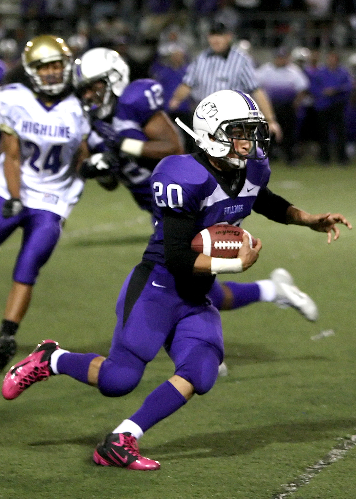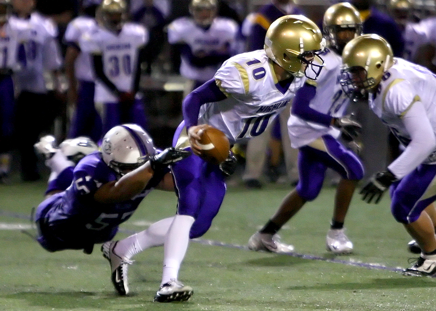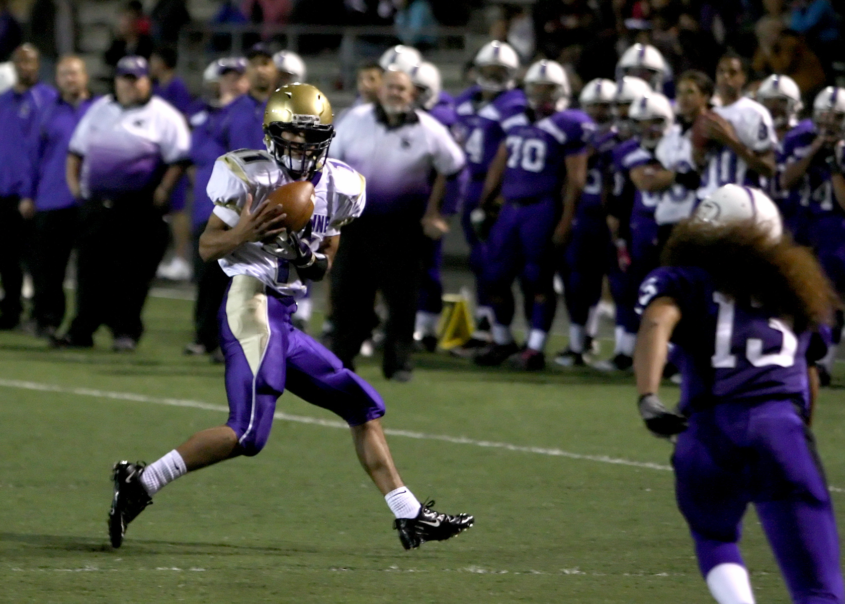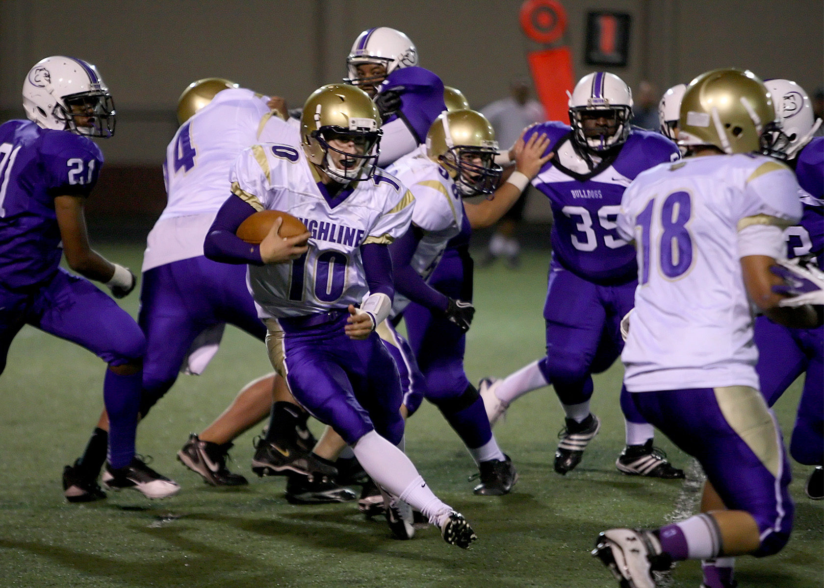 Football - Highline (13) @ Foster (27) 9-21-12 Highline's quarterback Erik Anderson scrambles for space to run. CLICK ON THE IMAGE ABOVE FOR MORE