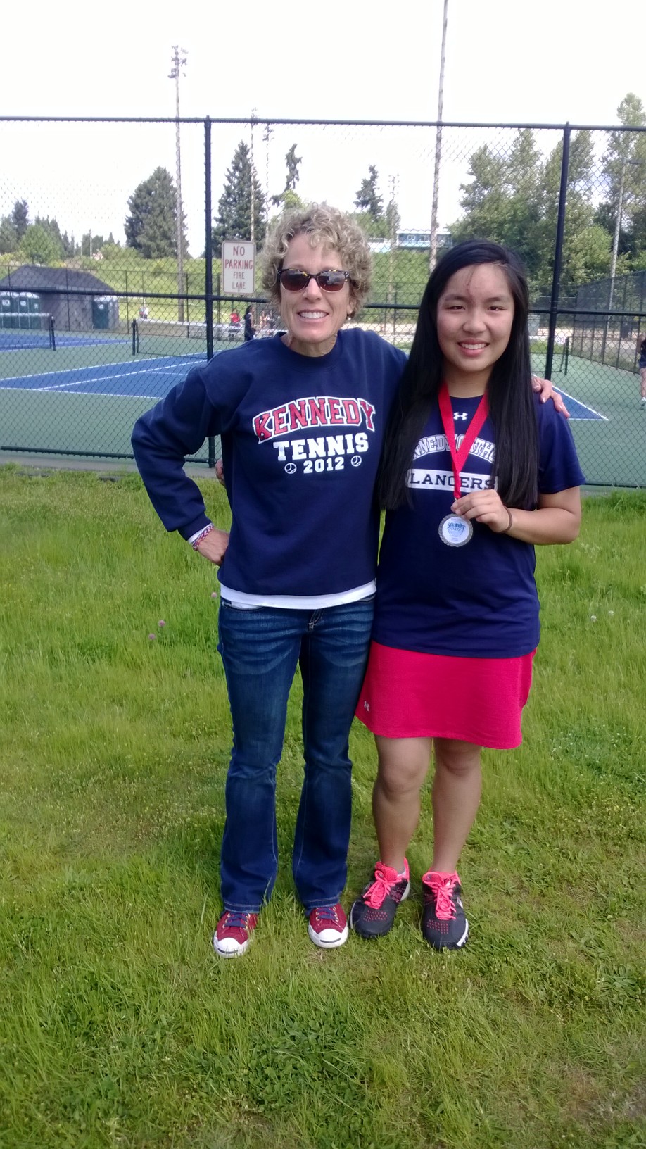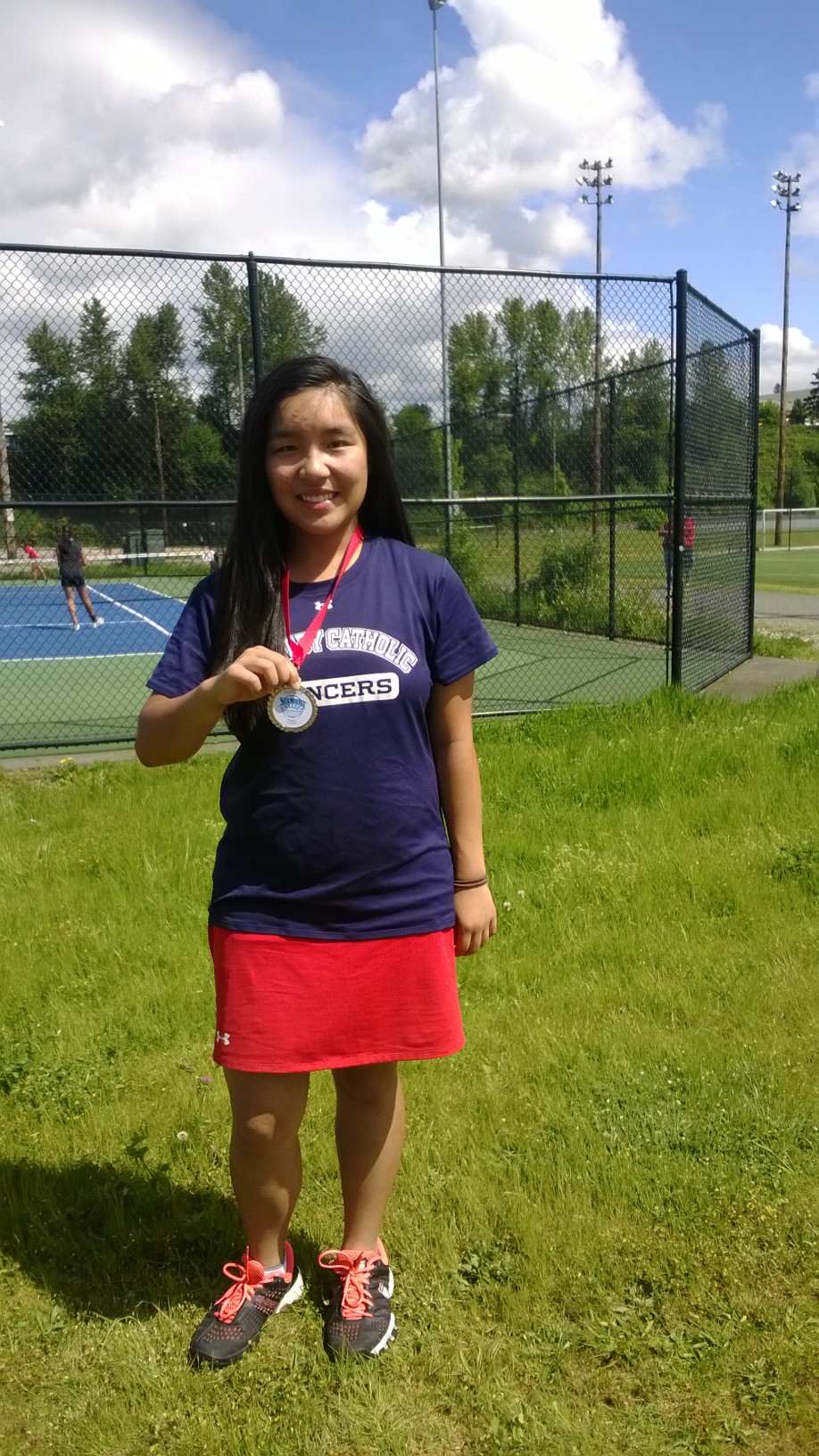 Maddie Lu of Kennedy Catholic proudly displays her second place medal from the Seamount League 3A girls tennis tournament.