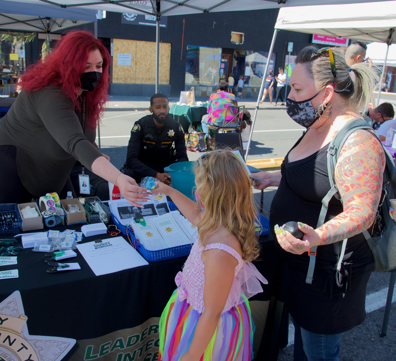Jewelry and stone obelisks were being offered. Photo by Patrick Robinson The King County Sheriff's office was well represented by their deputies and staff. Photo by Patrick Robinson La Tipica Oxaquena held a soft open in advance of their grand-reopening in two weeks. Photo by Patrick Robinson These ladies were taking donations and selling pub crawl and raffle tickets. Photo by Patrick Robinson