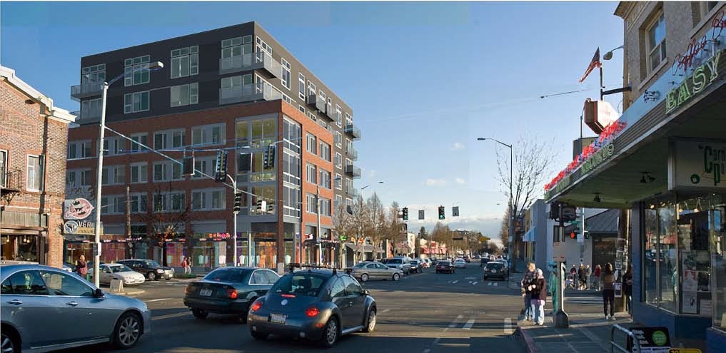 A tentative Early Design Guidance meeting is scheduled for Thursday, April 9 to review a proposal for a four story structure containing 16 residential units over 1,295 square feet of commercial space. Parking to be provided off-site. Existing structure to be demolished.