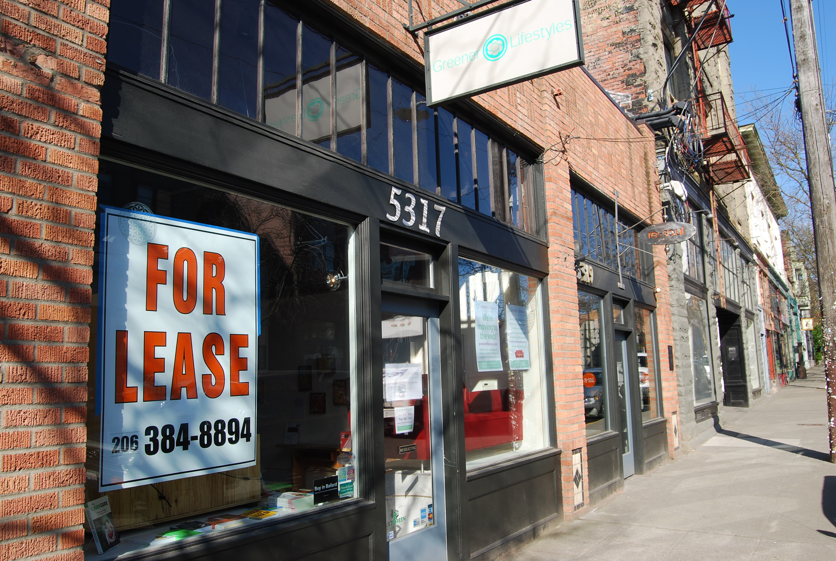 The space occupied by Greener Lifestyles at 5317 Ballard Ave. N.W. is up for lease.
