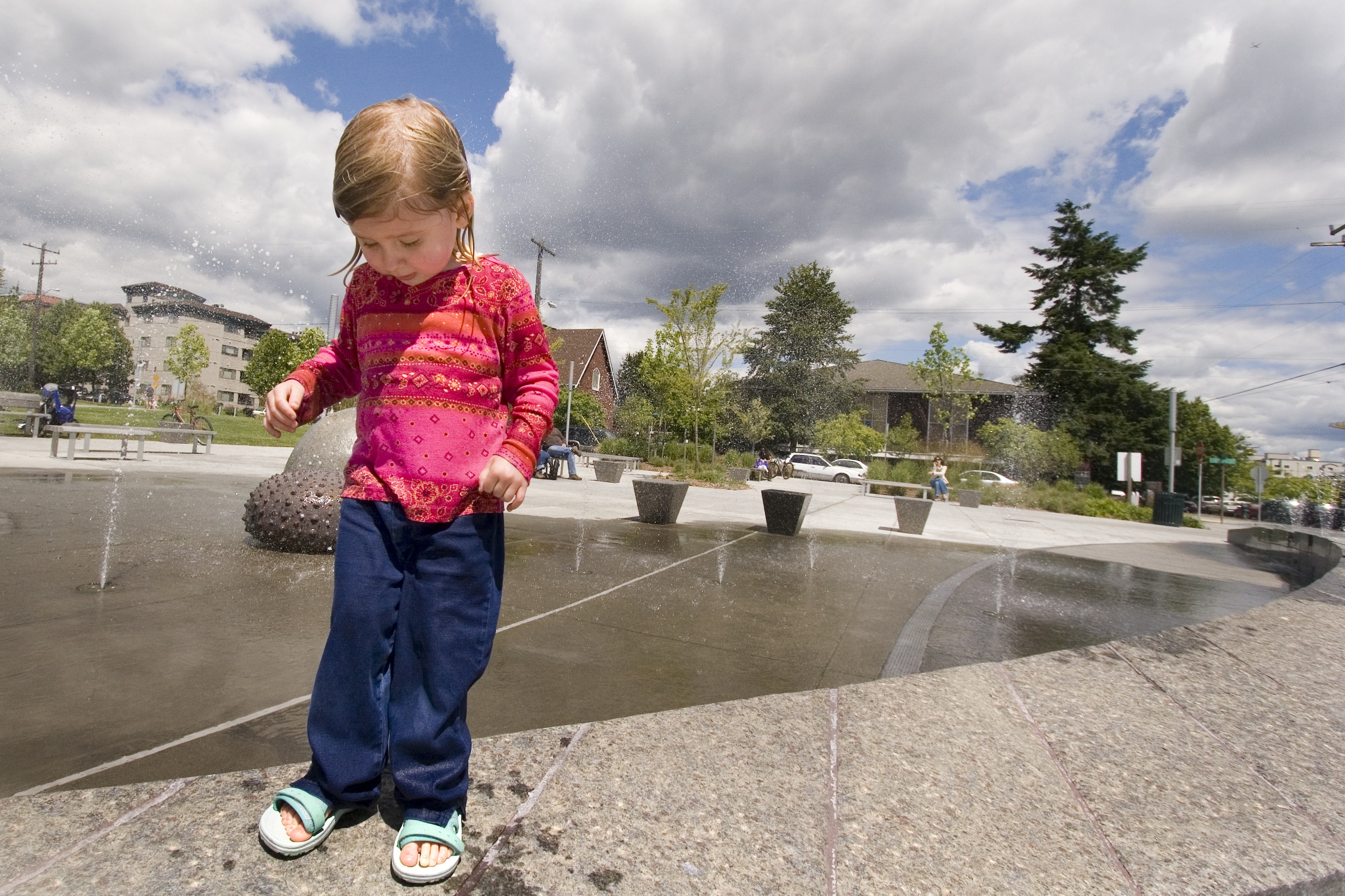 The five water spray features at Ballard Commons Park and Miller Playfield are open now; those at John C. Little, Sr. Park, Pratt Park, and Judkins Park will open on Saturday, May 23.