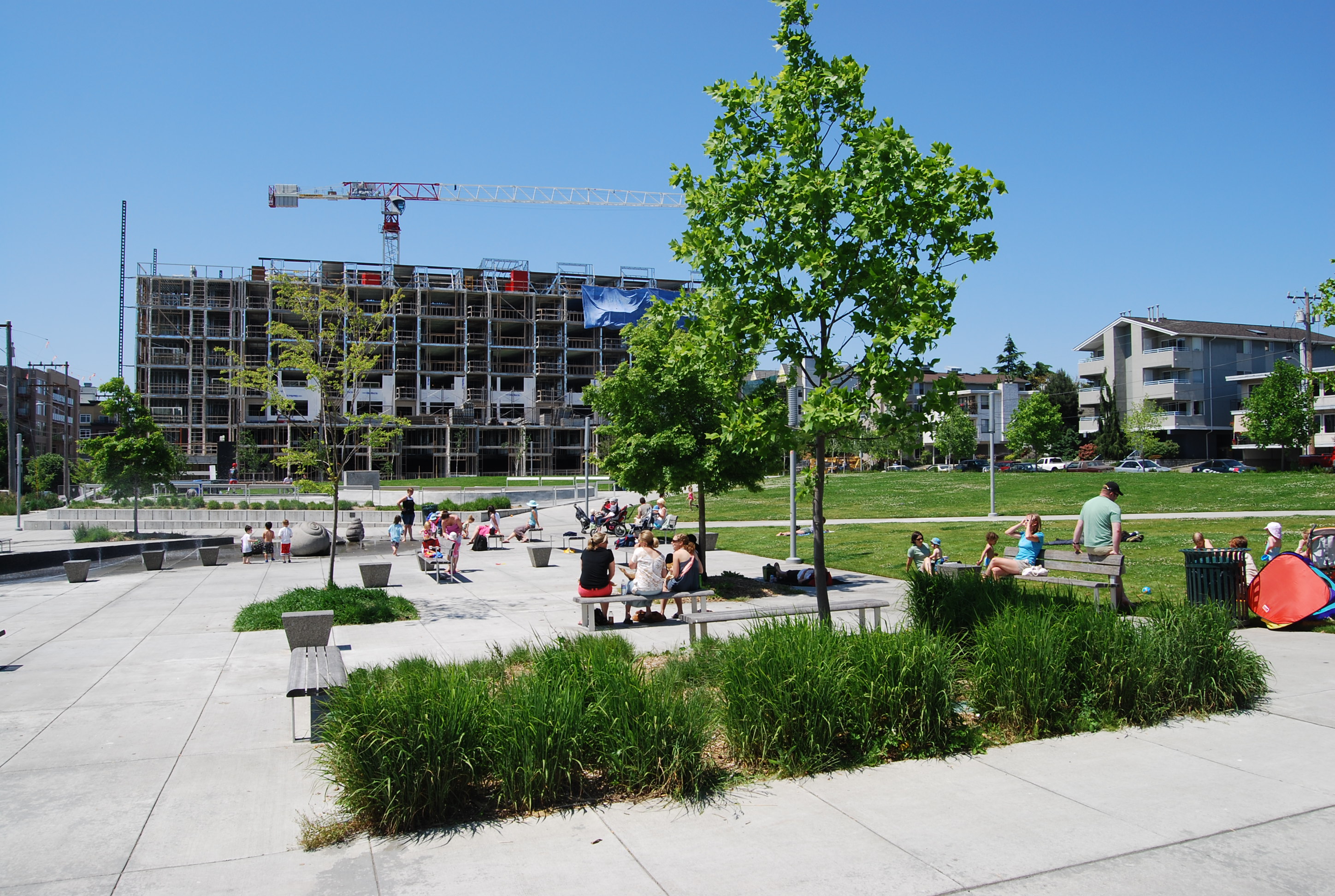Ballard Commons Park was swarmed with children, skateboarders and anyone looking for a place to lie down in the shade.
