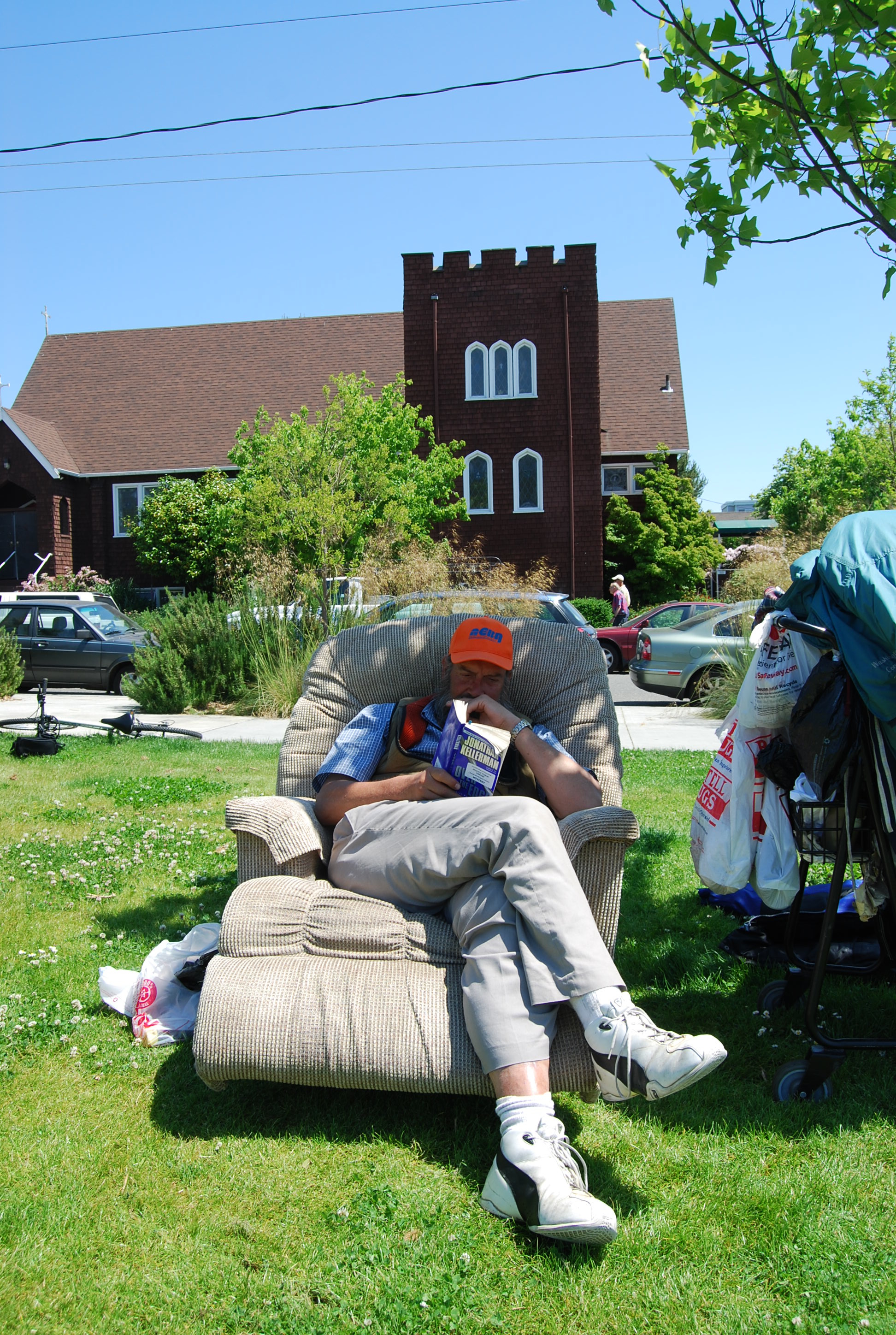 Gregg Tangeman has the best seat in the park at Ballard Commons during the high temperatures June 3. CLICK IMAGE FOR MORE PHOTOS.