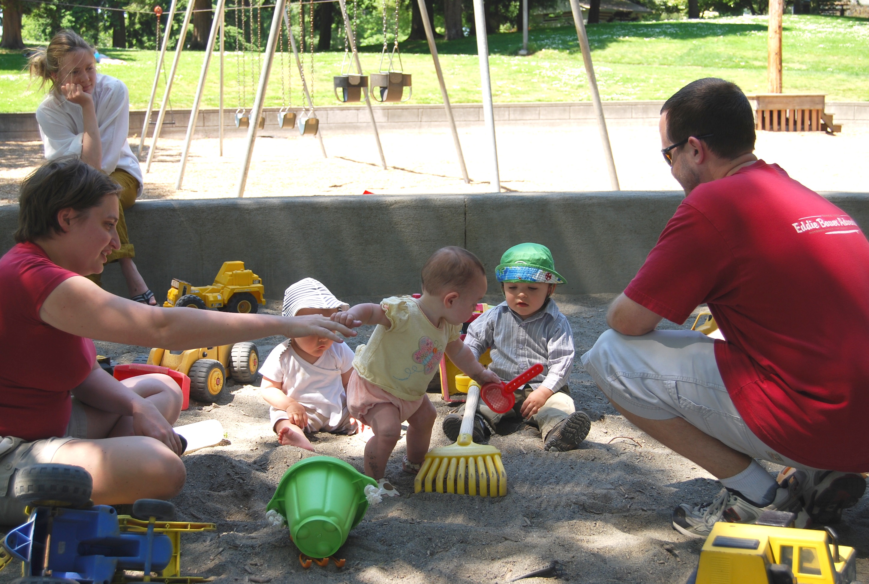 At Salmon Bay Park, Joshua Lang kept an eye on little Kaiden Lang in the sandbox.