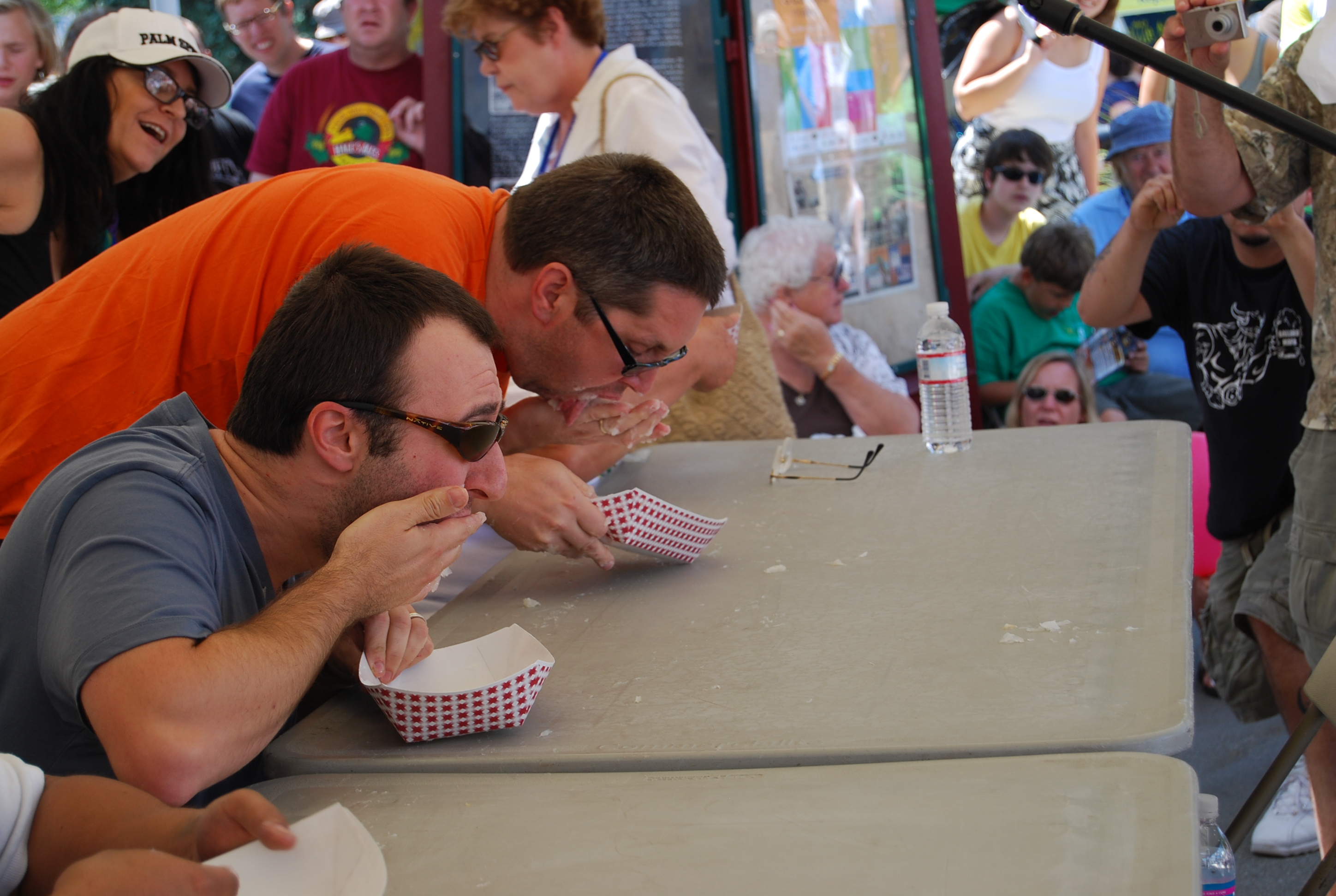 Lutefisk Eating Contest contestants Sam and Keith face off at the Ballard Seafood Fest July 25.
