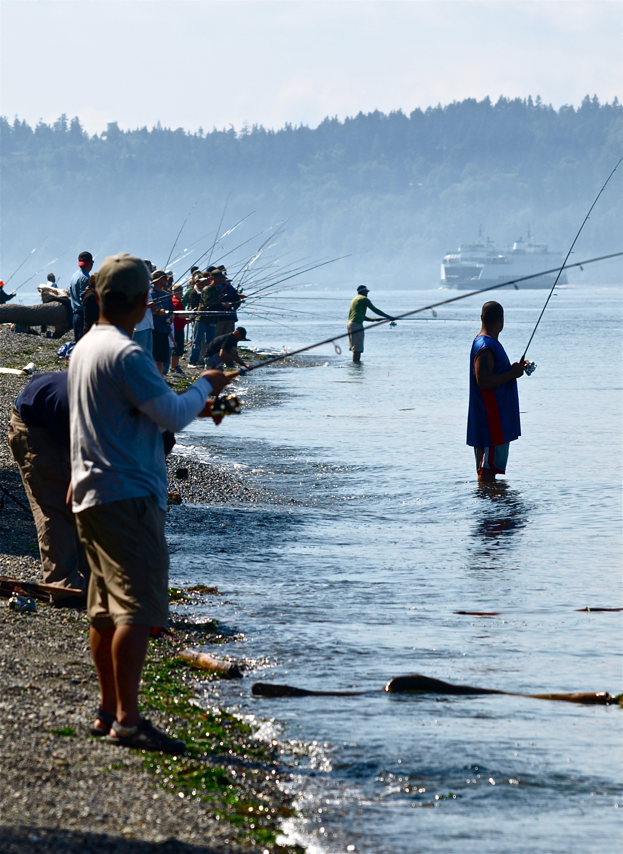 Point Williams (where Colman Pool is located) saw fishers of all sizes and types show up to catch their limit of salmon, too. As the sun slowly burned off successive layers of fog to reveal more blue sky and water more people arrived to enjoy the day.