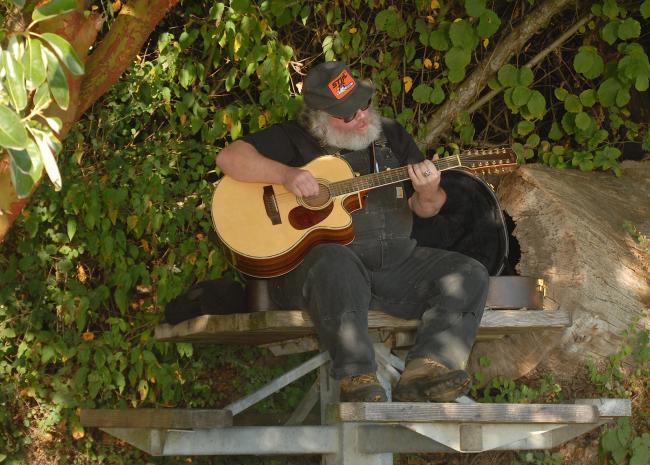 Guitar player and song writer Michael Deraitus performs in the natural setting of Lincoln Park on a sunny afternoon.