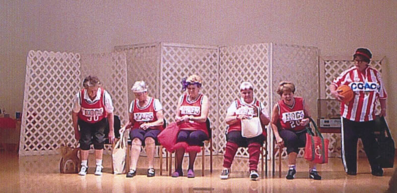 The acting troupe portrays a basketball team being badly beaten by a team from the Sisters of Mercy.
