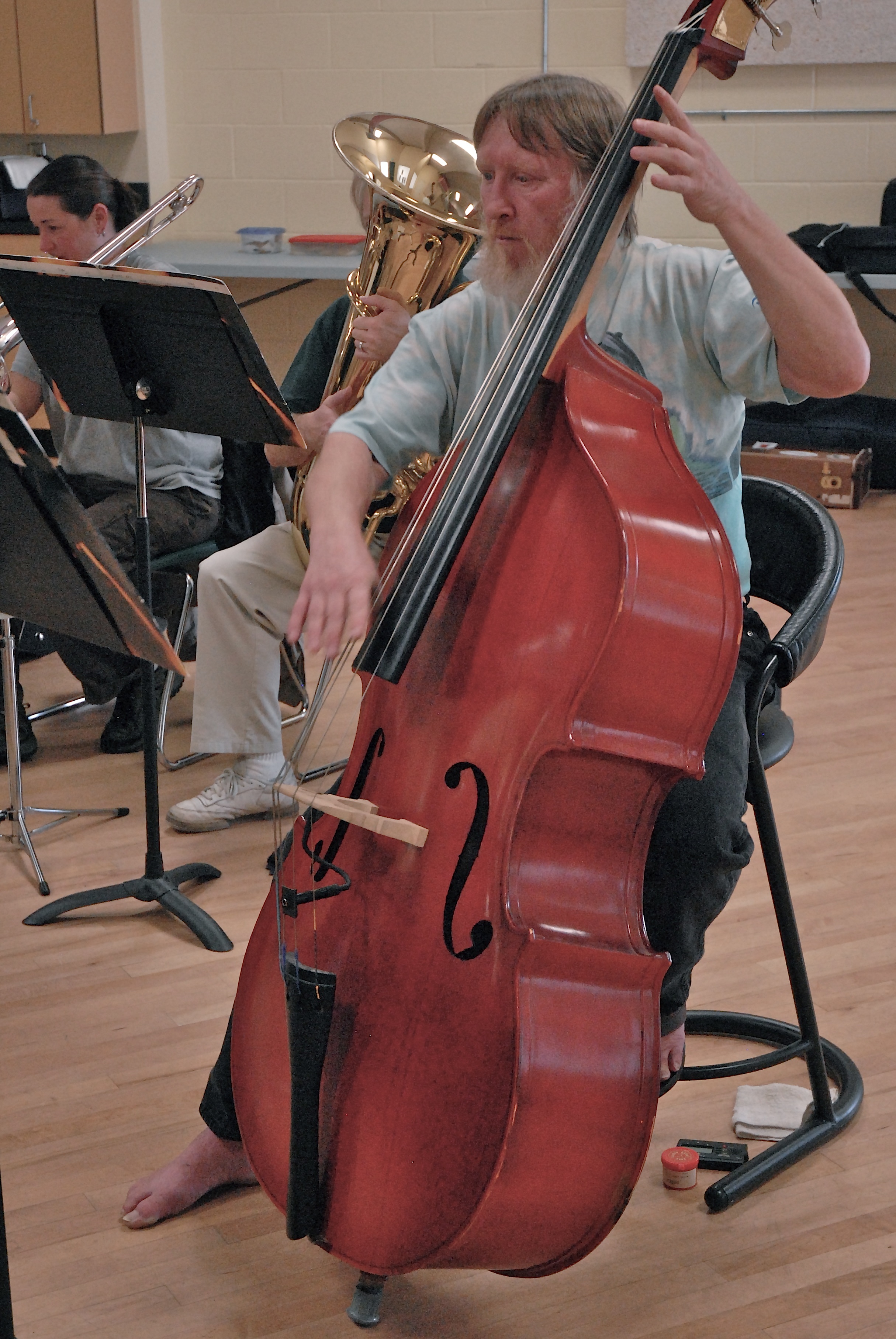 Clint Kelly, a Burien resident for 18 years, plays electric and acoustic bass for Pontiac Bay, and looks forward to his participation in "The Pontiac Bay Old-Time Radio Show." Kelly also plays in the Highline Christian Church band in Burien. He prefers to play barefoot at Pontiac Bay’s rehearsal space at Magnuson Park. He explained, “It’s more comfortable practicing without shoes. At the performance, however, concert dress is required.”