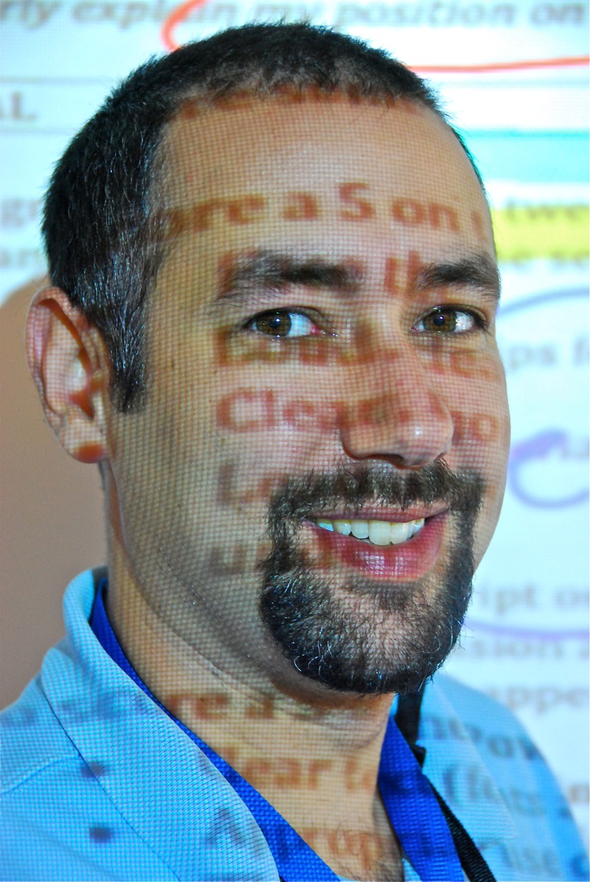 Social Studies teacher and information technologist Noah Zeichner shows off the Smartboard technology now in place at Chief Sealth International High School. The system allow images to be projected on a screen and interacted with on the wall.