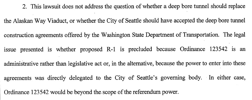 A portion of new lawsuit against anti-tunnel petitioners by City Attorney Pete Holmes. We will update this story.