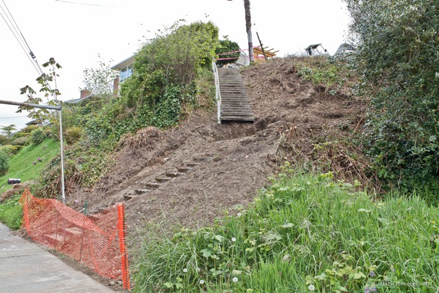 The 62-foot stairway provides a pedestrian and bicycle connection from Beach Drive SW along the water to the top of the hill. The existing 62-foot long stairway is more than 60 years old, in poor condition, and does not meet current standards. The stairs are made of rails and concrete slabs salvaged in the 1940’s when the city converted from trolleys to buses, and now have a hand rail on only one side.