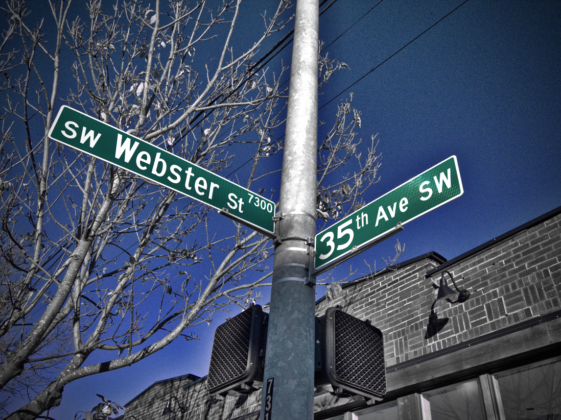 Located at the corner of Webster Street and 35th SW they are next door to each other very near the 510 foot high hill, the highest in Seattle.
