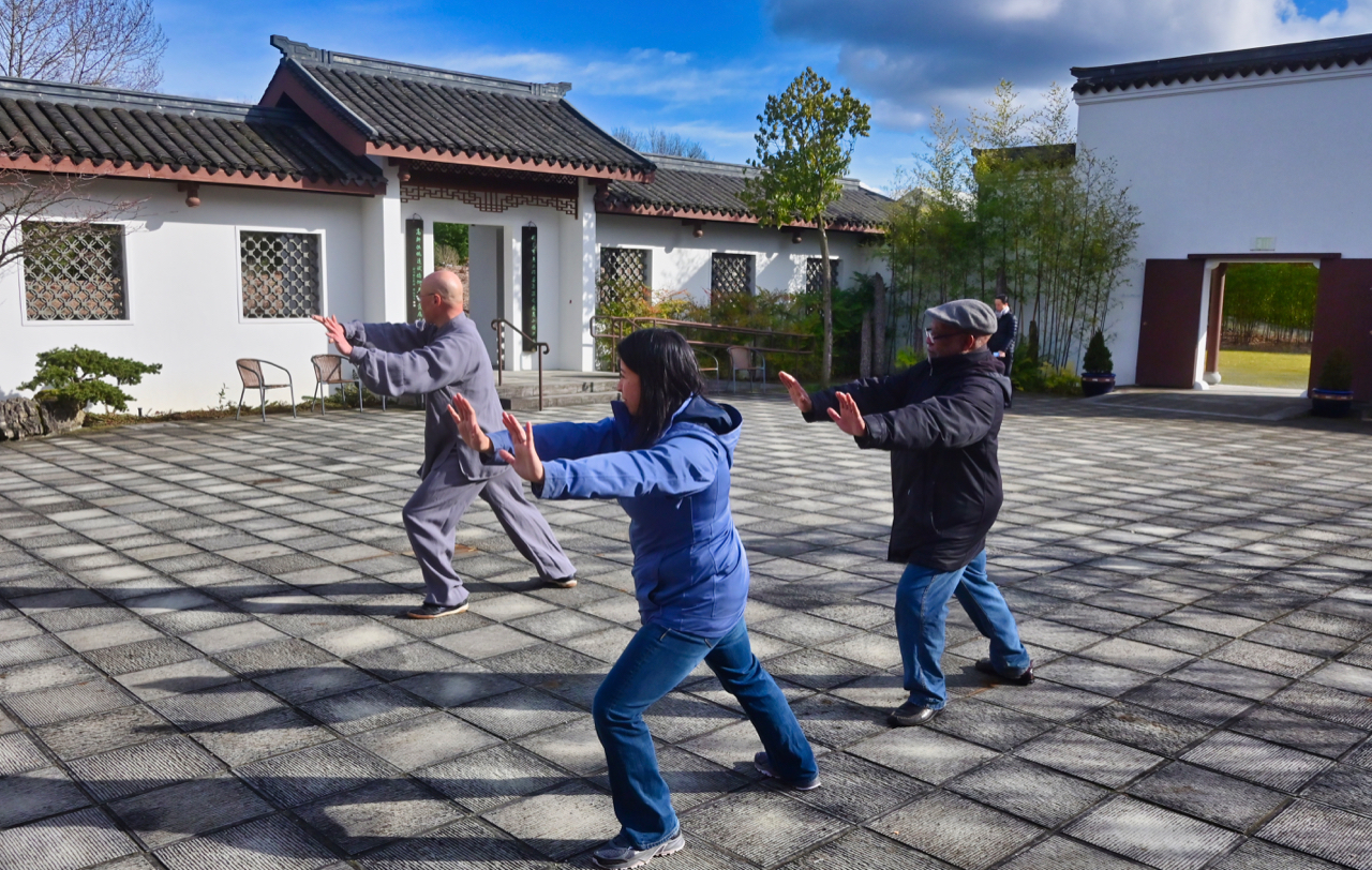 Julian Leung teaches 1 minute Tai-Chi at Knowing the Spring Courtyard. Photo by Patrick Robinson Gentle flowing movements characterize Tai Chi. Photo by Patrick Robinson Knowing the Spring Courtyard features beautiful flowering trees. Photo by Patrick Robinson