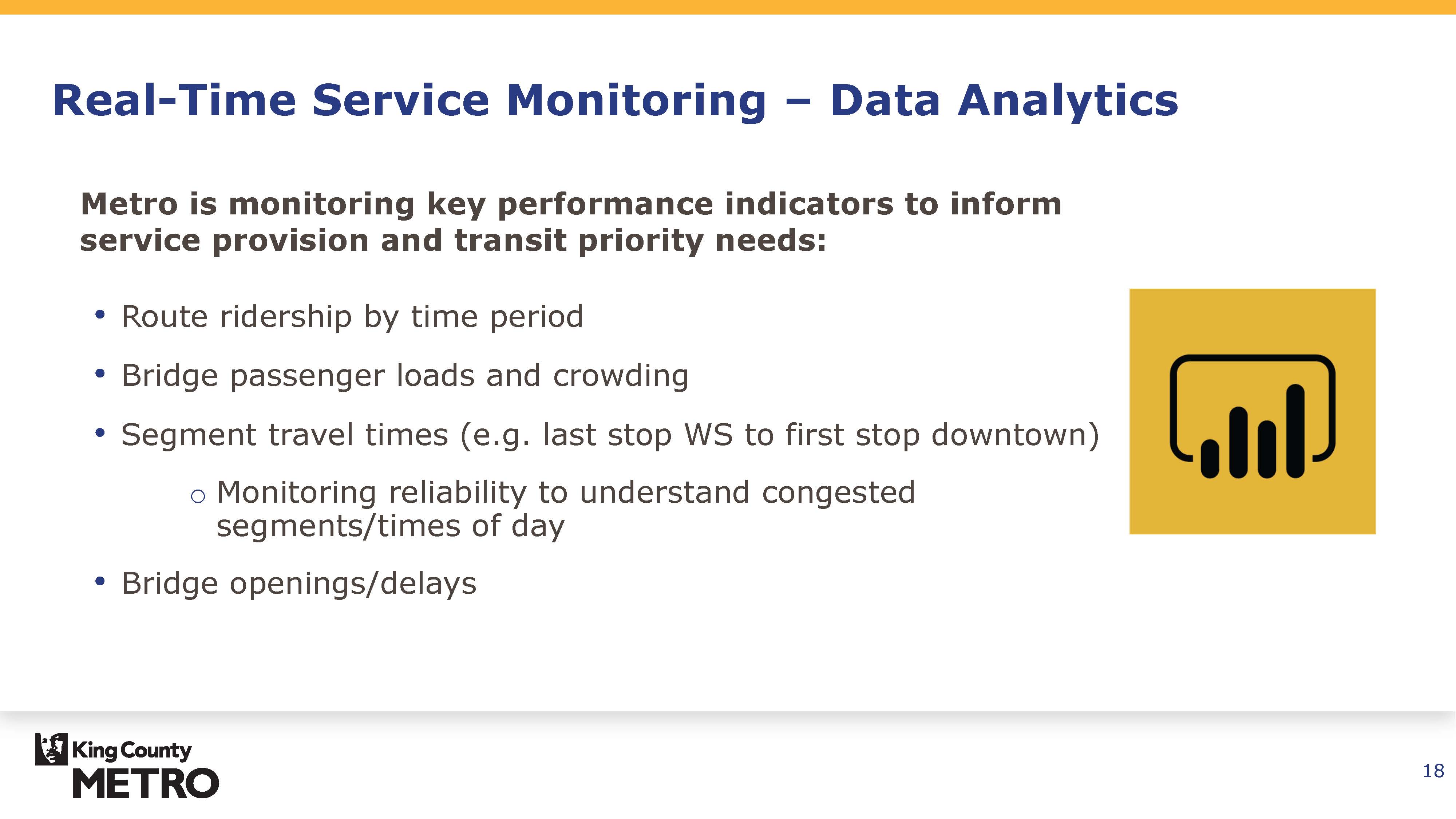 King County Metro has been hard at work looking at how to get people around and presented their response to the problems travelers faces without the bridge. Steve Crosely, project lead covered what Metro called High Impact Mobility Improvements such as: