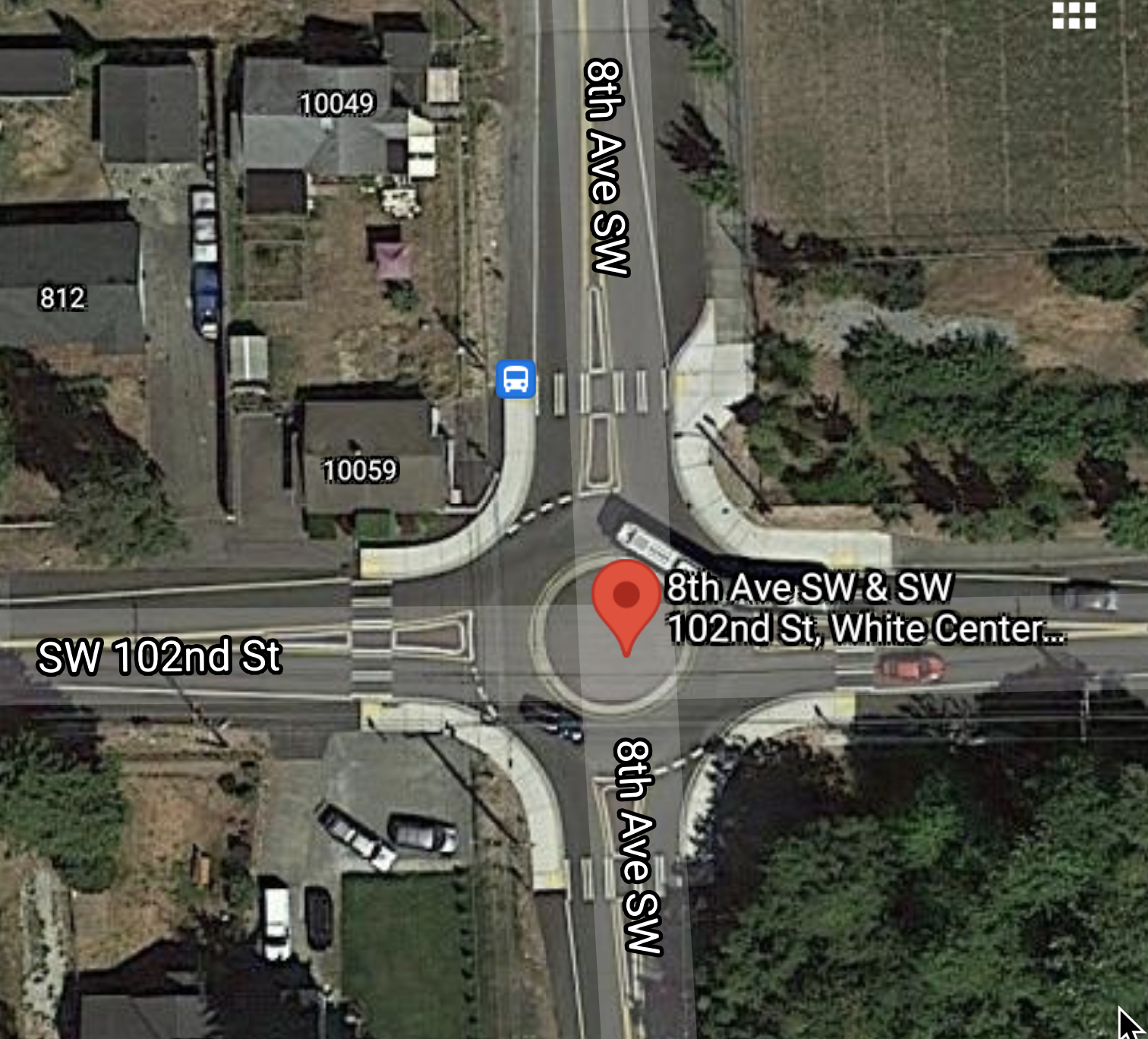 The Traffic Circle at 102nd SW and 8th SW. Google Maps