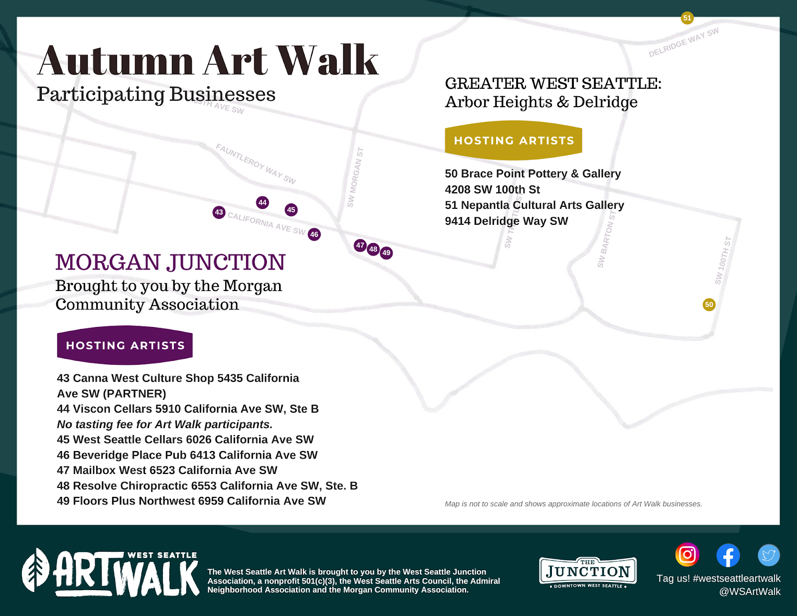 The Art of Music will be at two venues, John L. Scott in Alaska Junction and West Seattle Grounds in Admiral. You can grab a Walking Map at any of the participating businesses below to plan your route.