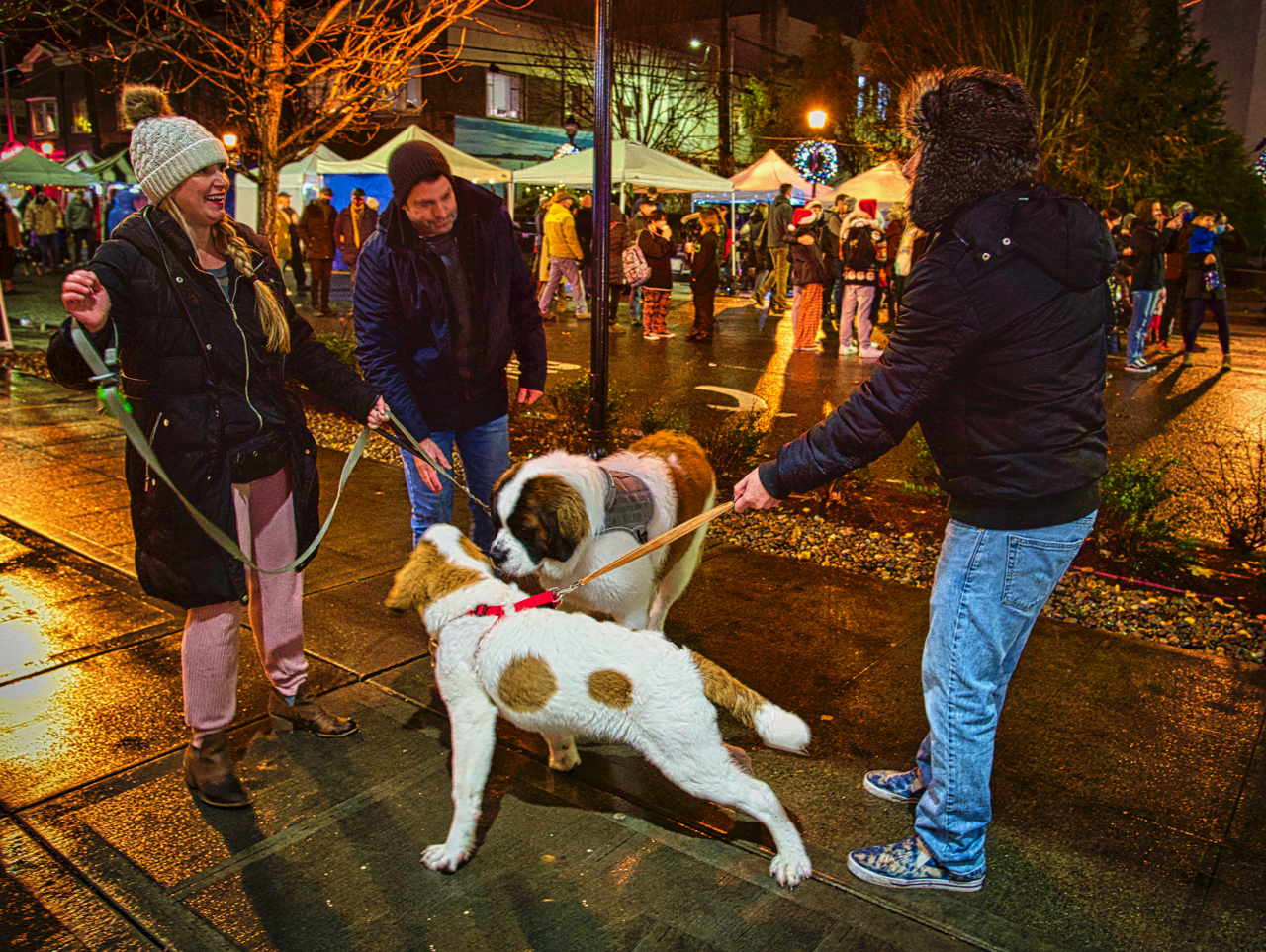 A Saint Bernard puppy (5 months) was getting checked out by a fully grown friend. Photo by Patrick Robinson