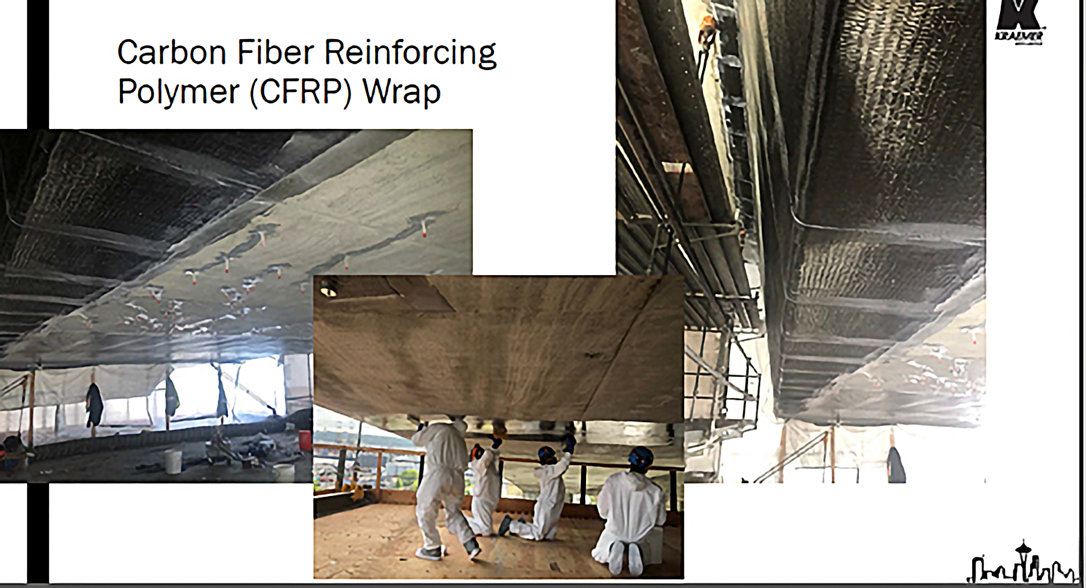 Funds originally planned for use on Pier 18 stabilization are now directed to major maintenance, including work on expansion joints shown in the bridge deck map above, concrete overlay and carbon fiber wraps. If SDOT hadn’t reallocated federal grant funds to this work, they’d have to be returned to the federal government.