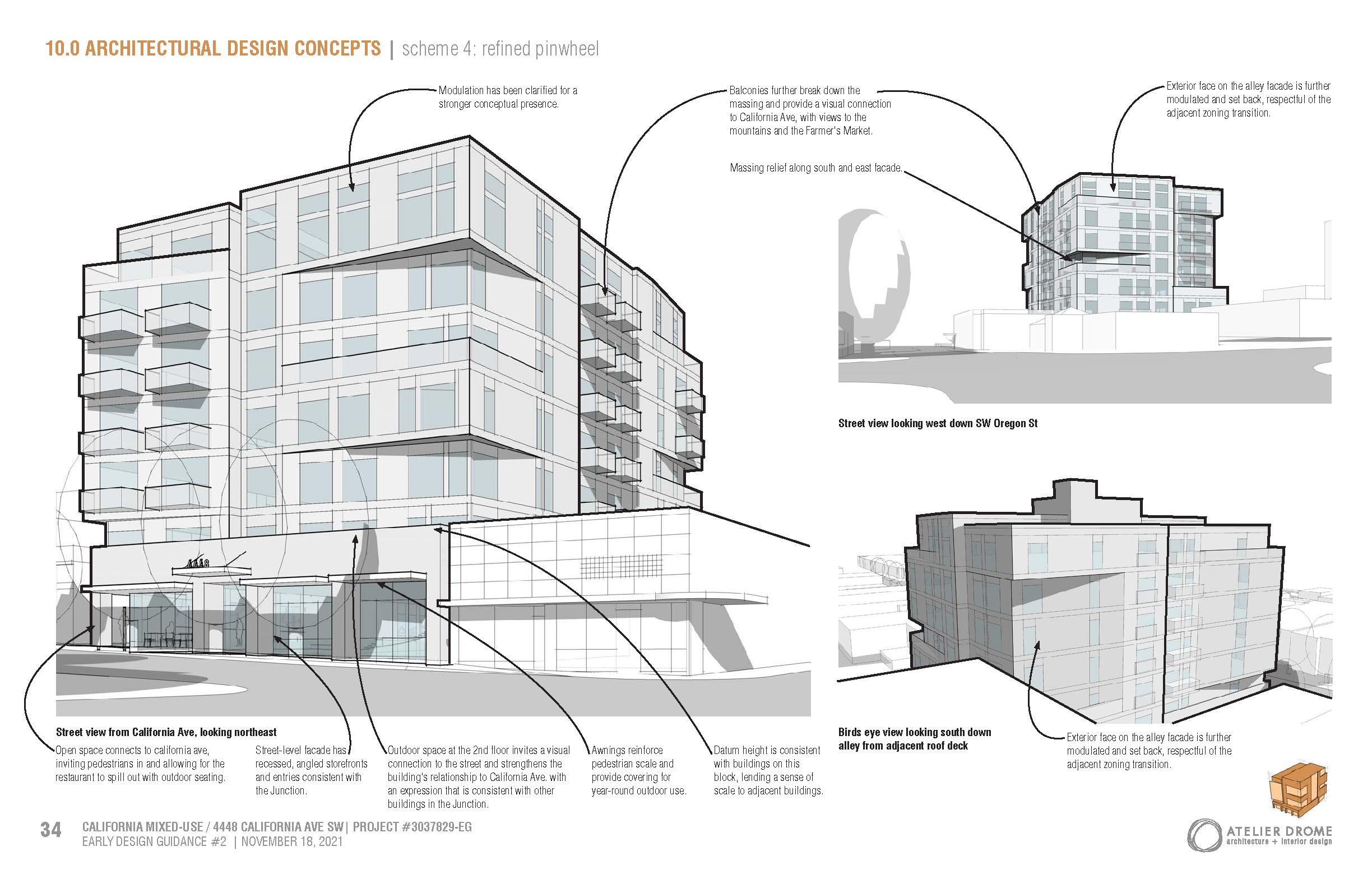 Objective 1: Provide visually interesting massing which responds to the building’s role as an important piece of the California Ave fabric, while respecting the character of the existing and historic buildings along California Ave.