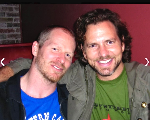 Easy Street Records owner Matt Vaughan and Eddie Vedder at West 5 in 2005. Photo courtesy Matt Vaughan