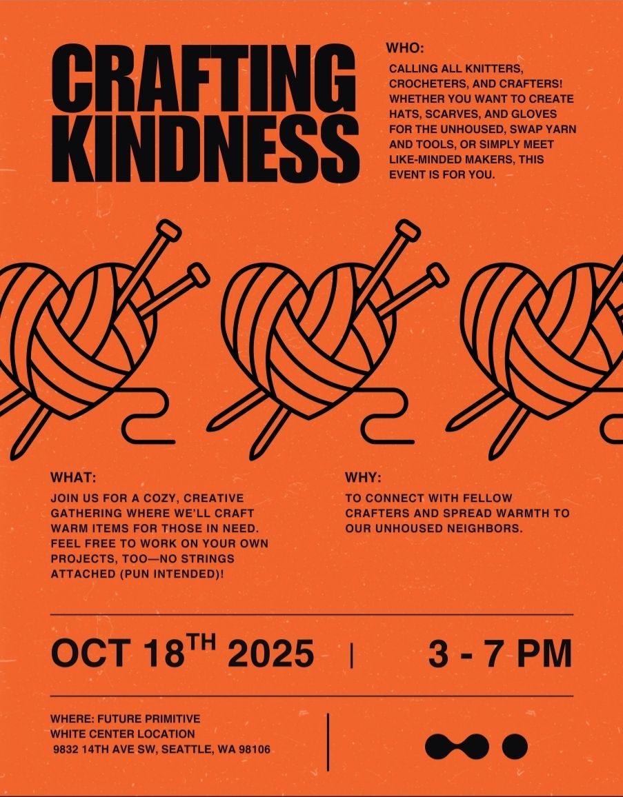 In an increasingly disconnected world, one local event is using the timeless crafts of knitting and crocheting to tie a community together and offer warmth to those who need it most. On October 18th, 2025, from 3 PM to 7 PM, the Future Primitive's White Center location will host "Crafting Kindness," a gathering aimed at spreading warmth to Seattle's unhoused neighbors, one stitch at a time.