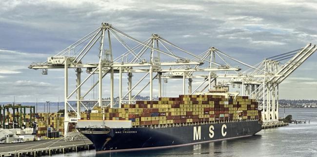 The MSC Francesca unloading at Terminal 5 in West Seattle on October 16.